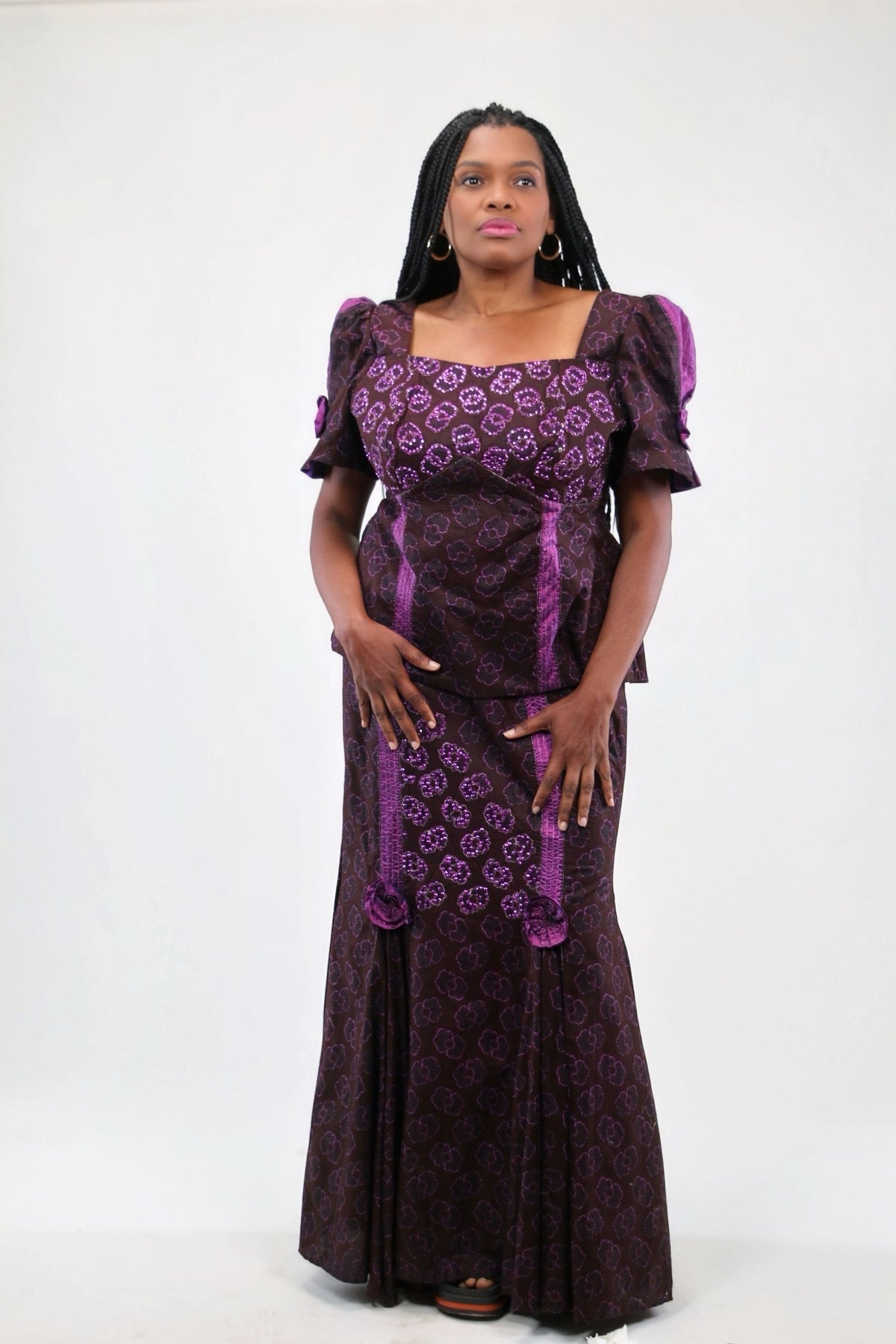 Brownish Purple with yellow Long Skirt, Top & Scarf